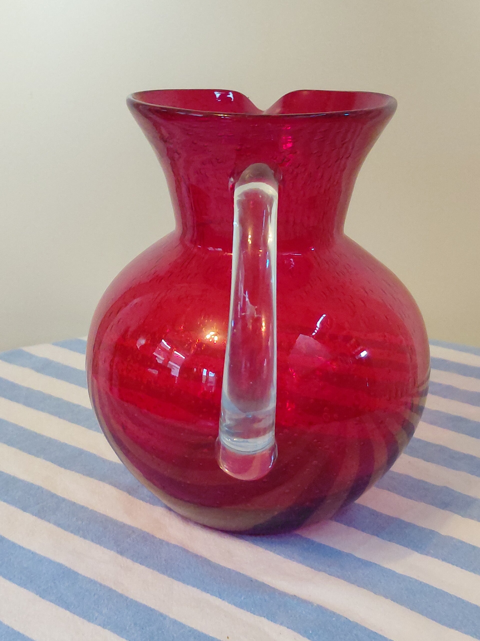 "Iris ruby red bubble glass pitcher "